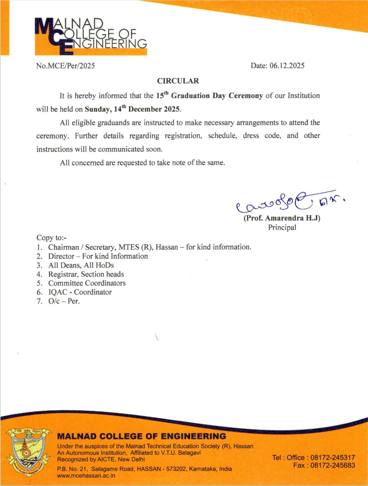 15th graduation day to be held on 14th December sunday 2025. Published On: 06 Dec 2025 08:02 PM Category: Notification 15th graduation day to be held on 14th December sunday 2025. WhatsApp_Image_2025-12-06_at_7_42_50_PM